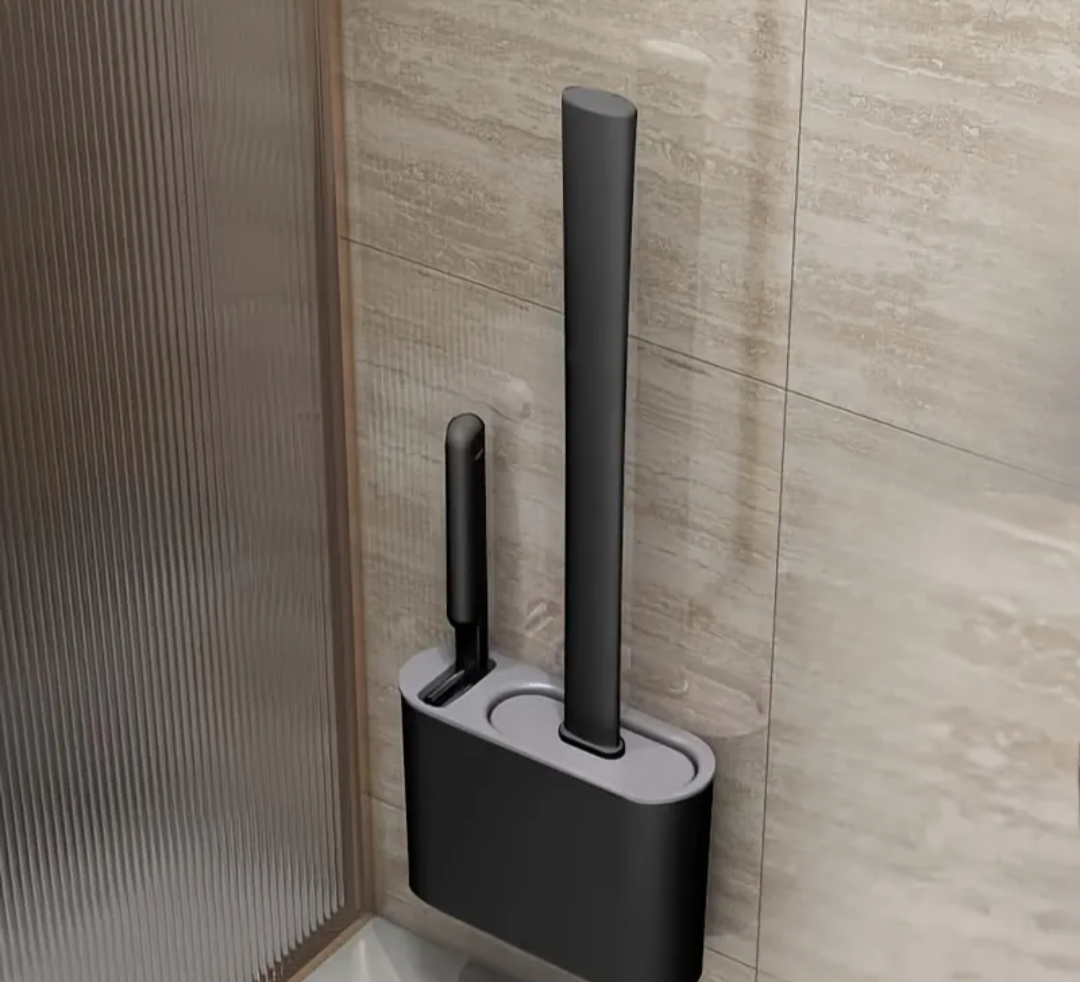 Estojo com duas escovas para limpeza do vaso sanitario.