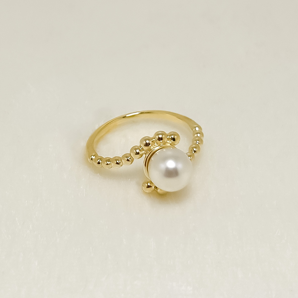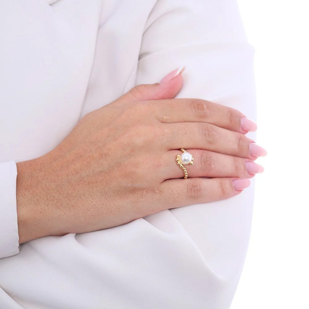 Anel de Pérola Detalhado – Banho Ouro 18K